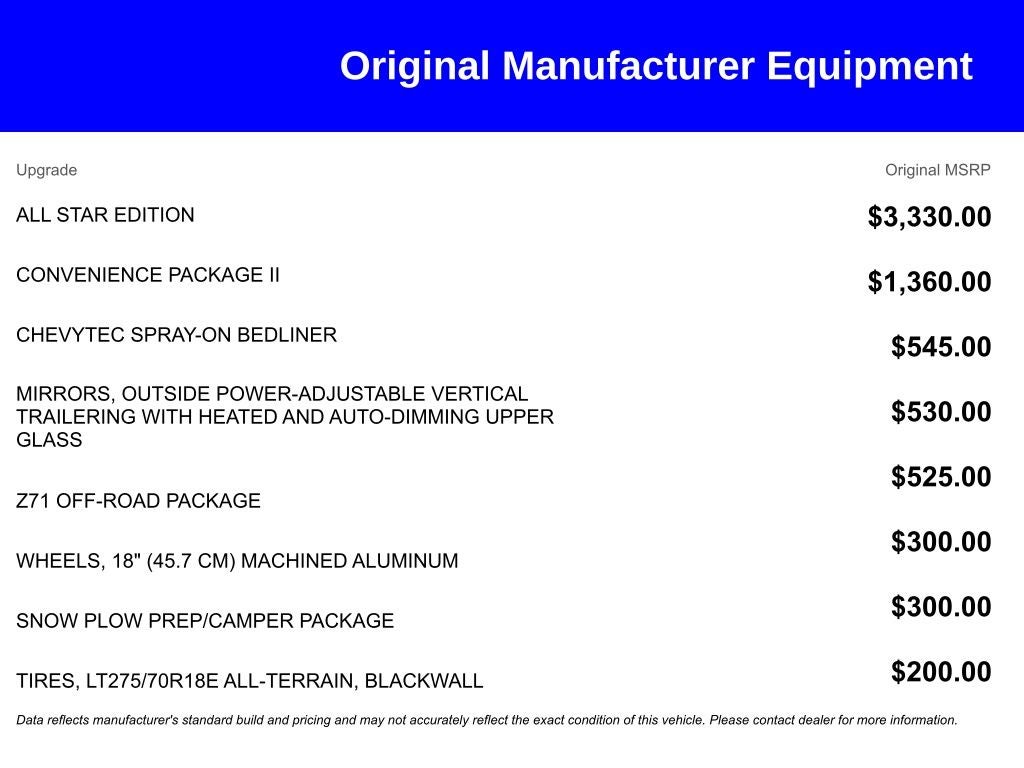 - Tailgate, locking, utilizes same key as ignition and door (Upgraded to (QT5) EZ Lift power lock and release tailgate when (PCL) Convenience Package or (ZL6) Advanced Trailering Package is ordered. Not available with (ZW9) pickup bed delete.) (Upgraded to (QT5) EZ Lift power lock and release tailgate when (WPF) Fleet Comfort Package, (PCL) Convenience Package or (ZL6) Advanced Trailering Package is ordered. Not available with (ZW9) pickup bed delete.)